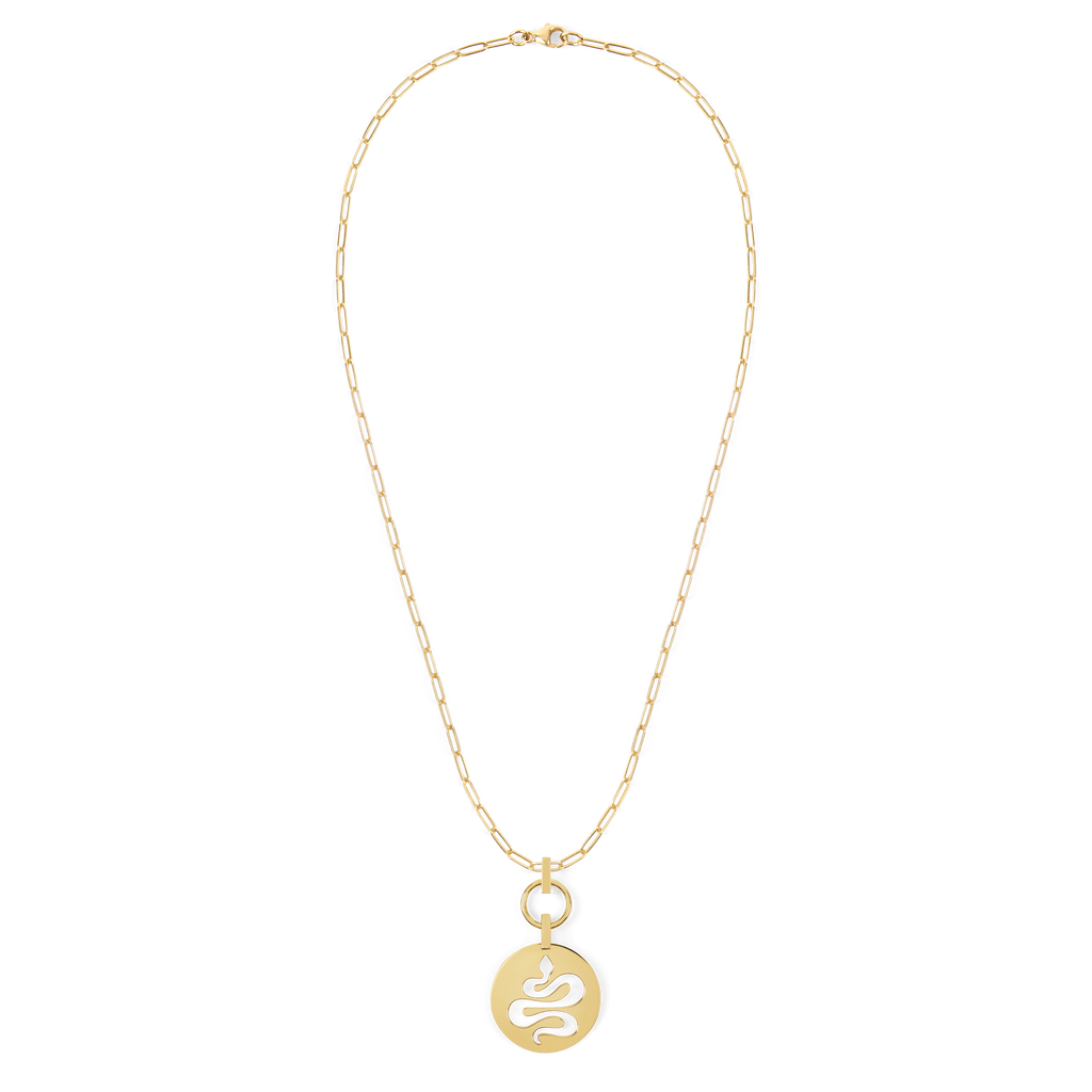 The Nomad collection captures intricate, free-flowing designs that echo the artistry of tattoos. Rooted in Diane's early training as a textile designer, the collection reflects a natural evolution of her 1970’s-inspired aesthetic, while weaving in elements of Greek history and the rich symbolism of her Animal Kingdom series. Together, these influences create five pendants which can be interchanged and worn on a beautifully crafted trace chain.